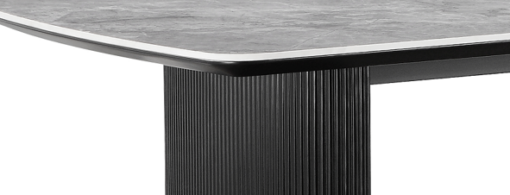 The stunning Aden Dining Table with patterned grey ceramic top and ribbed black legs will add style and class to any living space. A range of matching case goods also available.