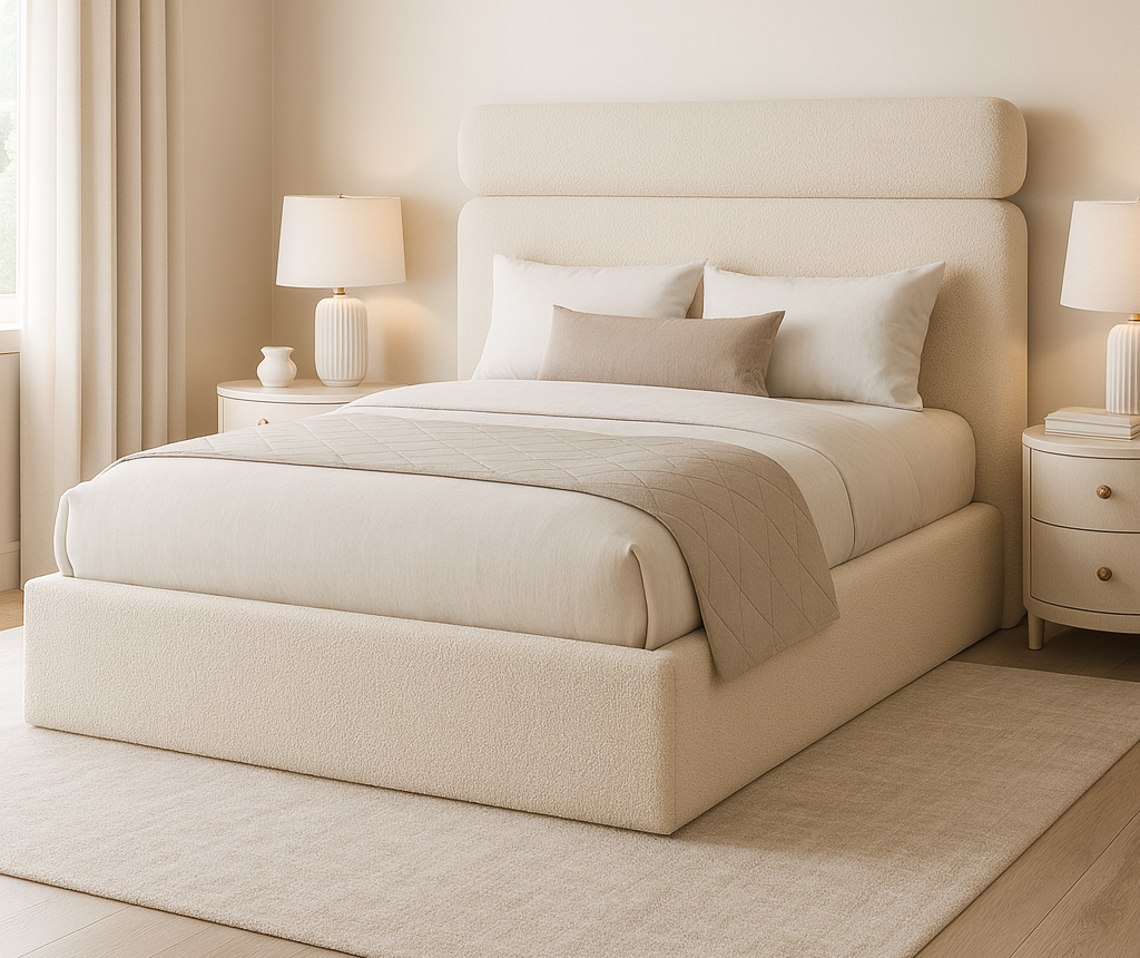 The Ava showcases a contemporary simplified model design. Pictured in Boucle fabric but comes in a range fabric and colour options. Available in all sizes. Proudly Australian made and owned.