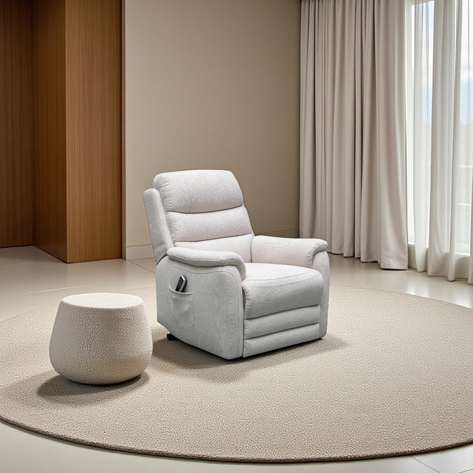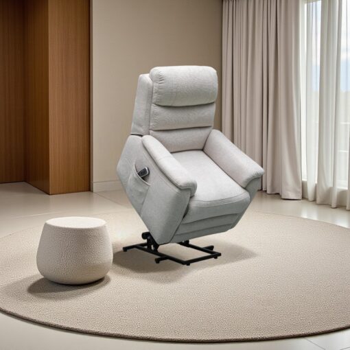 The Baxter dual lift chair comes in a water repellant fabric and is designed to help you move. With the dual motor mechanism to elevate your lounge experience.Your comfort zone will be found at the touch of a button. The lift action conveniently moves the back rest independently from the foot rest allowing you to adjust to a variety of angles for ease of movement and transitioning from a seated to a standing position and vice versa. 160 kg weight capacity, available in 2 colours thunder and ash. Comes with battery back-up.