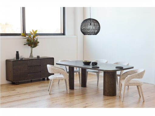 Your furniture experience starts with the stunning Caprica range. The wild, rich, dark oak veneer adds a touch of sophistication to any home decor. The perfect balance between style and functionality. The dining table with a range of case goods to match.