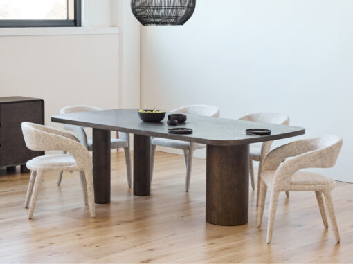 Your furniture experience starts with the stunning Caprica range. The wild, rich, dark oak veneer adds a touch of sophistication to any home decor. The perfect balance between style and functionality. The Harlow dining chair adds a touch of elegance to your dining room. The classic upholstered design will instantly elevate any space, giving it a luxurious and sophisticated look.