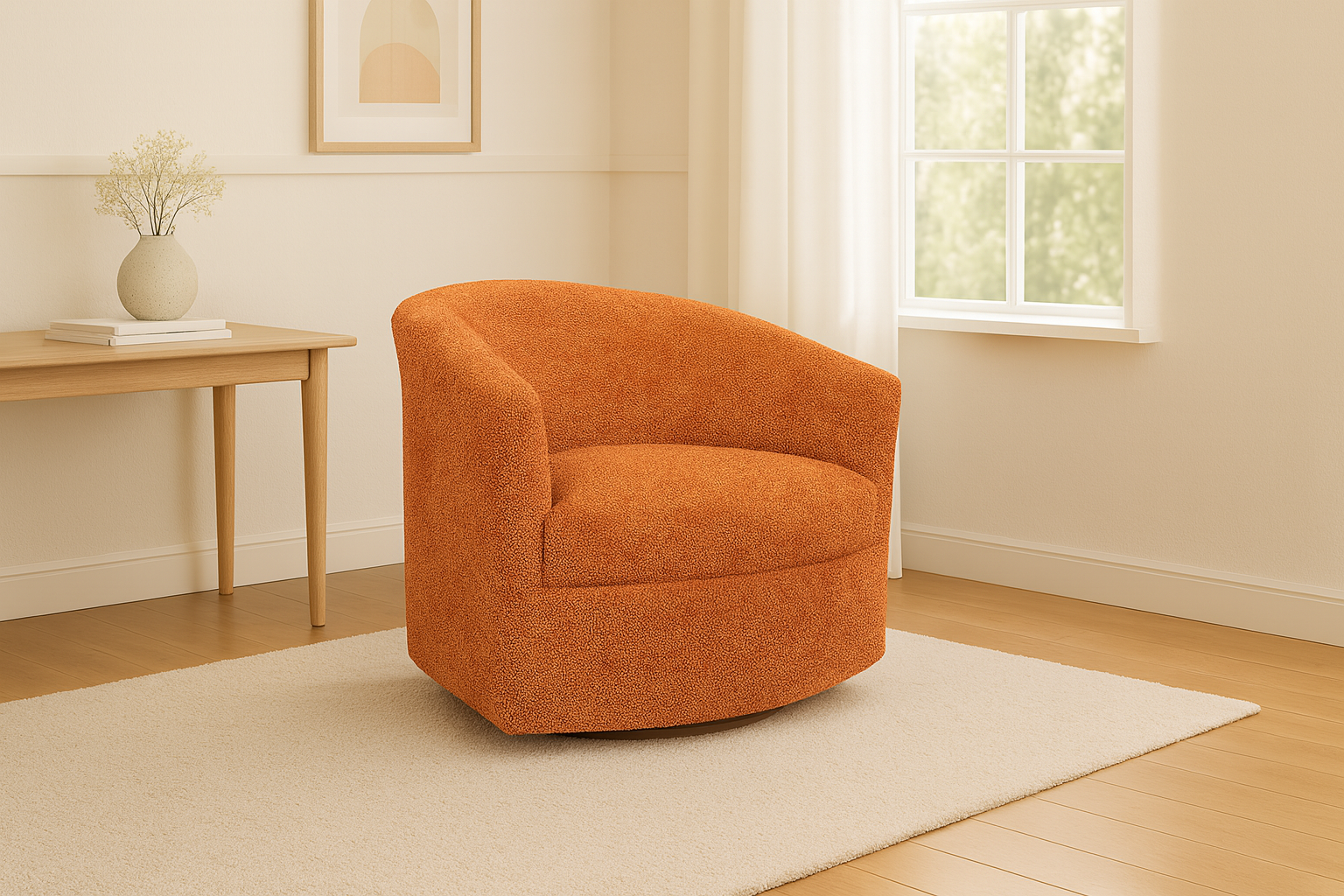 The Clancy swivel tub chair offers an inviting blend of style and comfort, perfect for modern living spaces. Its sleek low profile design features a curved silhouette that hugs your body providing exceptional support and relaxation. The 360-degree swivel base adds versatility, making it a stylish and functional addition to any room