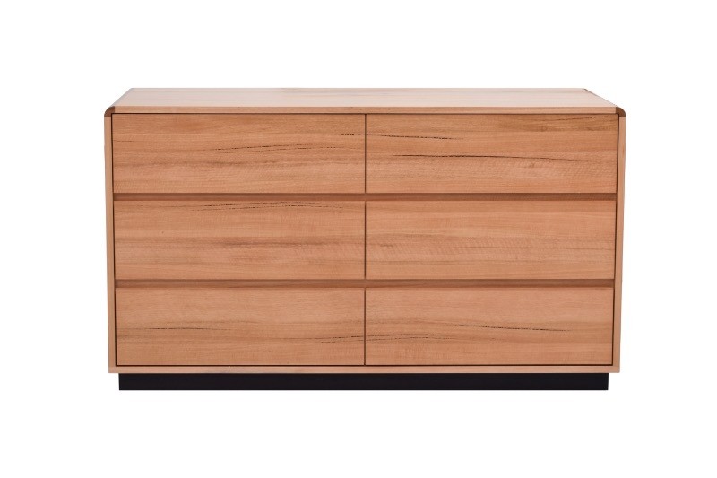 The Empire collection showcases the beauty of stunning Marri timber with a modern twist. Designed perfectly with the Empire bed frame, the range includes 2-drawer bedsides, a 5-drawer tallboy and 6-drawer dresser. Each piece features elegant curved corners and rests on a sleek modern black base, brining both warmth and contemporary style to your bedroom.