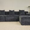 The Glebe Sofa offers a bold oversized silhouette paired with soft inviting lines. Finished in a deep charcoal textured fabric, it delivers both statement and subtlety – ideal for modern interiors seeking luxurious lounge depth.