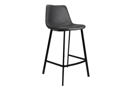 The Hugo bar stool is a retro inspired design with tapered powder-coated legs. Its sleek, stylish faux leather gives it unequalled precedence. Retro stitching for modern appeal and a soft to touch fabric. Three side foot rest for a relaxed seating position and fits well under bar or kitchen bench top seating. Available in 4 colours black, antique black, antique grey and cognac.