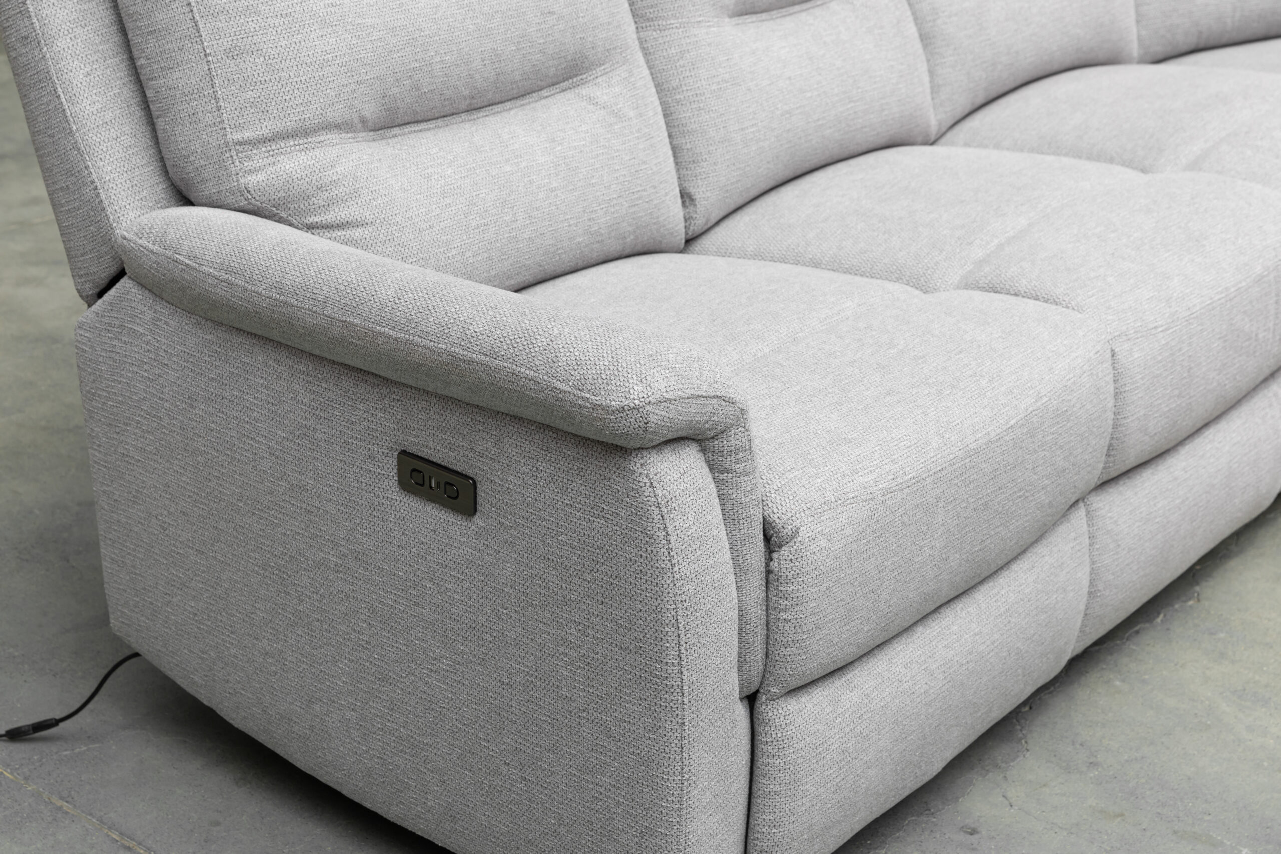 Bring Comfort and practicality together with the Jenny corner suite, crafted in stylish Zara water repellant fabric for easy care, durability and hassle-free maintenance. The corner suite has electric recliners at each end for ultimate relaxation, USB and USB-C charging ports for modern convenience. Available in fresh colour choices Ash and Thunder and also as a 3 seater recliner suite to suit your space. Perfect for family living or entertaining the Jenny recliner suite combines contemporary style with functional design.