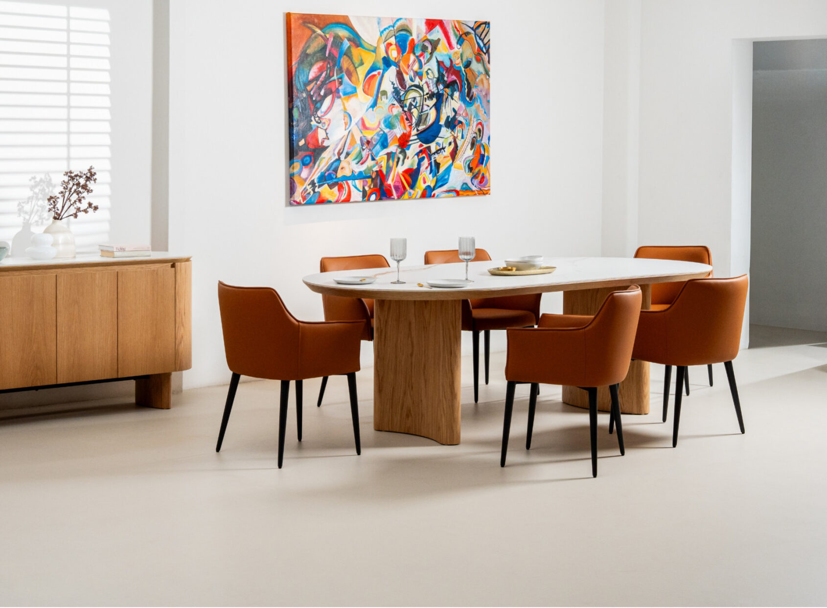 The Lucerne-Monaco Dining setting will draw attention in any living space. The stunning table is crafted from high-quality ash veneer with a calming design that effortlessly enhances any dining space. The smooth ceramic top pairs beautifully with the ash veneer, offering both durability and aesthetic appeal. Paired with the sophisticated Monaco dining chair this setting brings a unique timeless charm to your home. The chair is in a durable PU fabric and available in 2 fresh colours terracotta and grey. A full range of matching case goods also available for your dream living space.