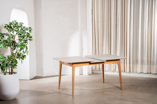 The standout of the table is the ability to extend from 1400 to 1800 mm. This gives the flexibility to comfortably accomodate more desks at your dining table. Whether your hosting a small intimate dinner or a large gathering, this table has got you covered. The solid oak timber legs ensures that the table remains stable and sturdy even when fully extended.
