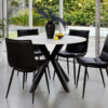 The Pompeii Dining Table is expertly crafted to bring you a unique and stylish addition to your home decor. The stunning stone range travertine look paired with the corrugated MDF base creates a one of a kind piece that will elevate any dining room. Matched with the sleek and modern Onasis dining chair. A simple deign chair that is perfect for those who appreciate a clean and clutter free space, while adding a touch of elegance to your home. Available in 2 colours leaf and linen.