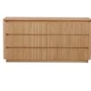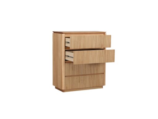 The Prada bedroom suite combines contemporary elegance with practical design. Featuring detailed ribbed panelled drawer fronts, the case goods add texture and visual interest to any bedroom. The rounded timber edges soften the overall look, creating a seamless blend of style and sophistication. Crafted for durability and timeless appeal, its the perfect complement for modern interiors.