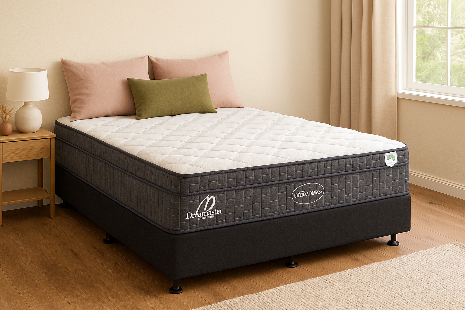 Dreamasters Chiro Advance mattress features a 3 zone full width pocket spring mattress construction giving extra support in the centre third where you need it most. Bekaert Australian Knitted fabric with the latest temperature control technology coupled with health guard and anti-dust mite treatment. Hartley Australia open cell pillowtop foams.