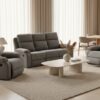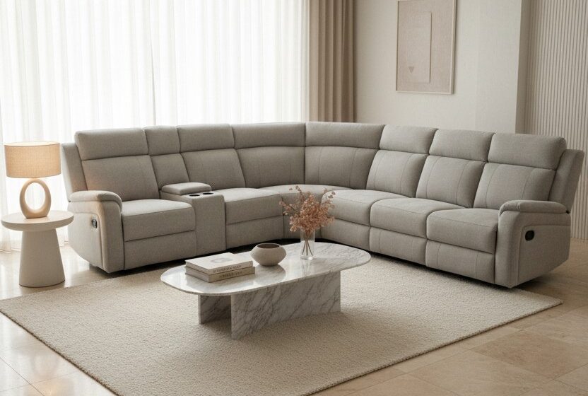 The Virgo corner suite is a stylish and practical addition to any modern living space, this corner lounge suite offers comfort, durability and smart design. Featuring a manual recliner at each end, it provides the perfect spot to unwind. The storage console adds convenient space for remotes, devices and refreshments, keeping your lounge tidy and organised. Upholstered in a hard-wearing fabric built to stand up to everyday use, this suite is available in three contemporary colour options – charcoal, Navy and Silver – making it easy to match with your home decor.